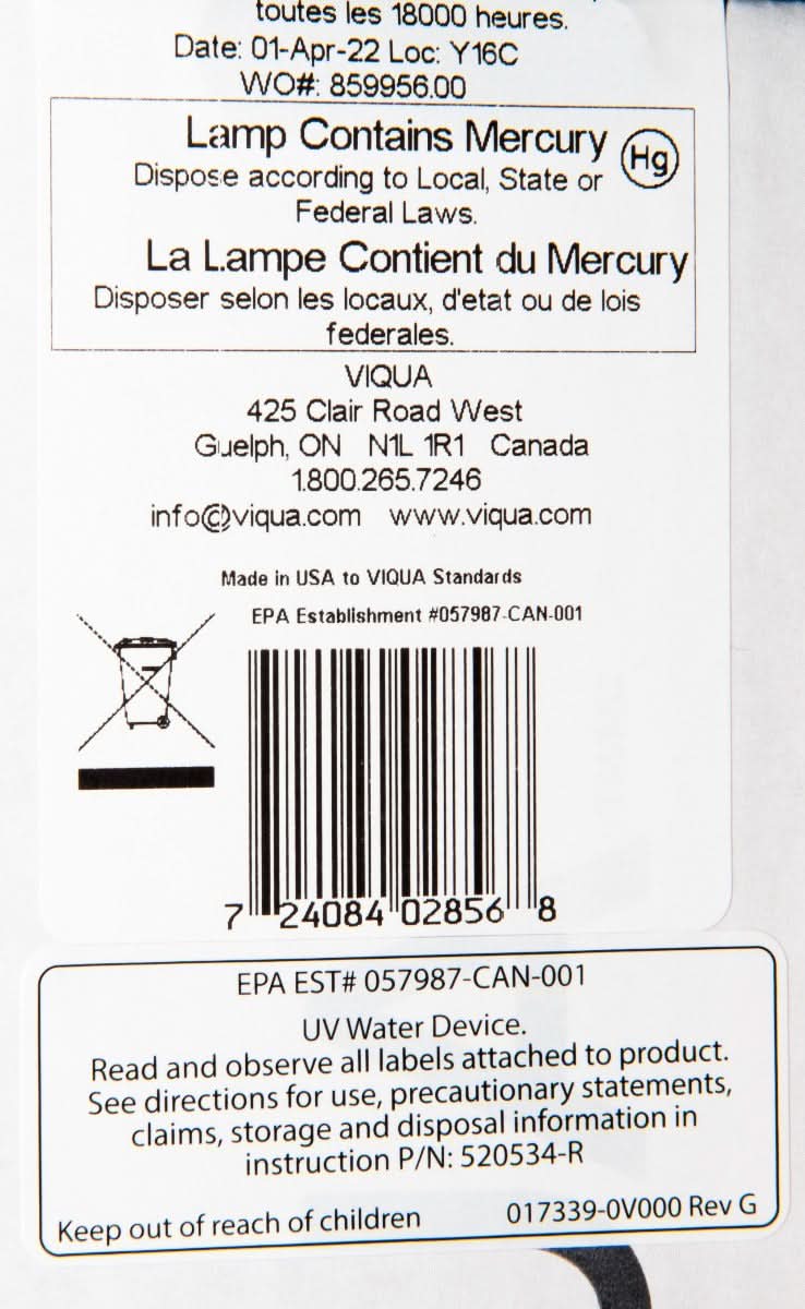 The 602856 by Viqua is a UV replacement bulb that reduces microorganisms in your water. Designed by manufacturer for Viqua K, K+, PRO30, PRO50.The Viqua 602856 UltraViolet Lamp is a replacement bulb for the Viqua K, K+, PRO30, PRO50 systems, discontinued Trojan J, J+ systems, and discontinued Sterilight S80, SM80, SV50 systems. This bulb provides protection from occasional intrusion by microbial contaminants, eliminating up to 99% of bacteria, Cryptosporidium, E. Coli, Salmonella, and viruses. During ultraviolet sterilization, water is exposed at a controlled rate to UV light waves, which deactivate the DNA of microorganisms and prevent them from reproducing. Easy to install and maintain with replacement needed every 24 months. Order the 602856 Viqua Water Disinfection System UV Lamp today!Share
