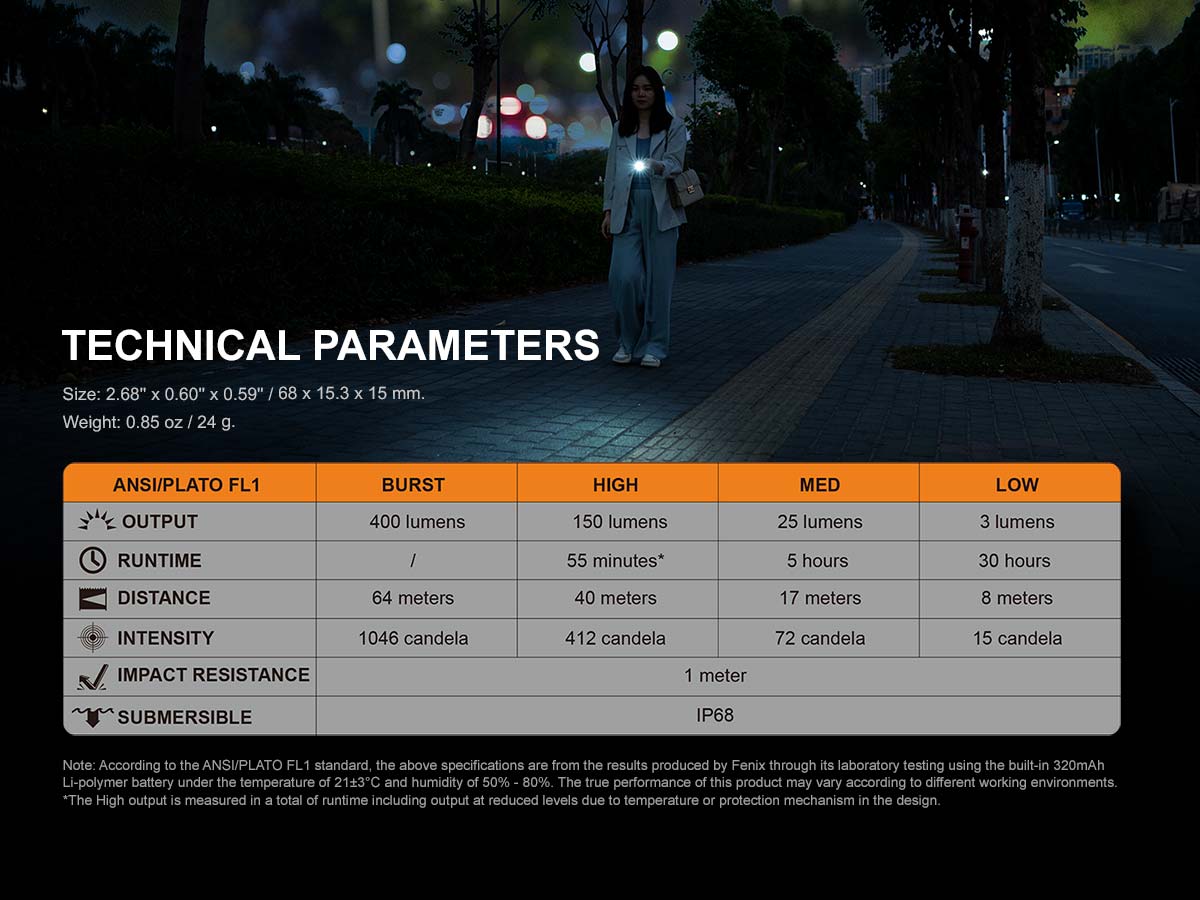 Compact, lightweight, and always ready— the Fenix E05R Keychain Flashlight packs a surprising punch with up to 400 lumens of brightness from a body that’s under 3” long. Perfect for your keys, pocket, or bag, this mini EDC light is tough, rechargeable, and built for everyday convenience.
