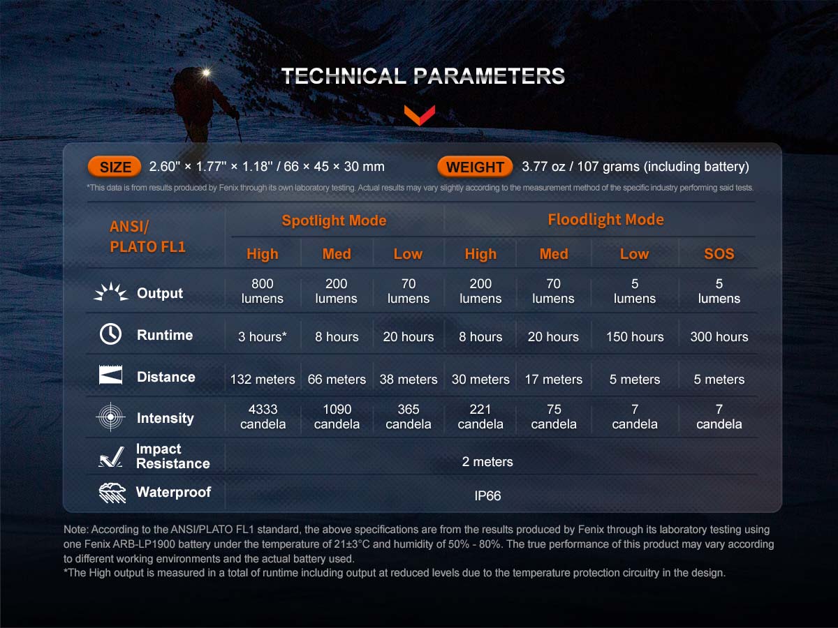 📏 LED: Luminus SST20 cool white spotlight, neutral white floodlight