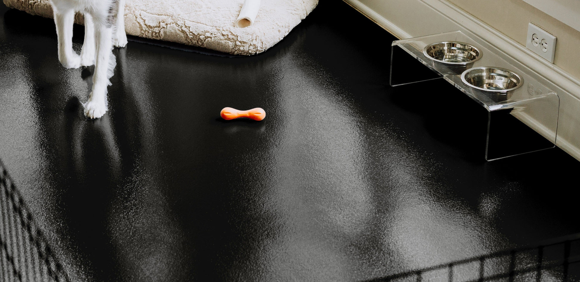 Crafted from 100% solid polyvinyl, this mat is waterproof, stain-resistant, and built to withstand scratches, claws, and spills. Whether it’s food and water messes, accidents, or everyday wear, this flooring shields your surfaces from damage while creating a comfortable space for pets to play and relax.