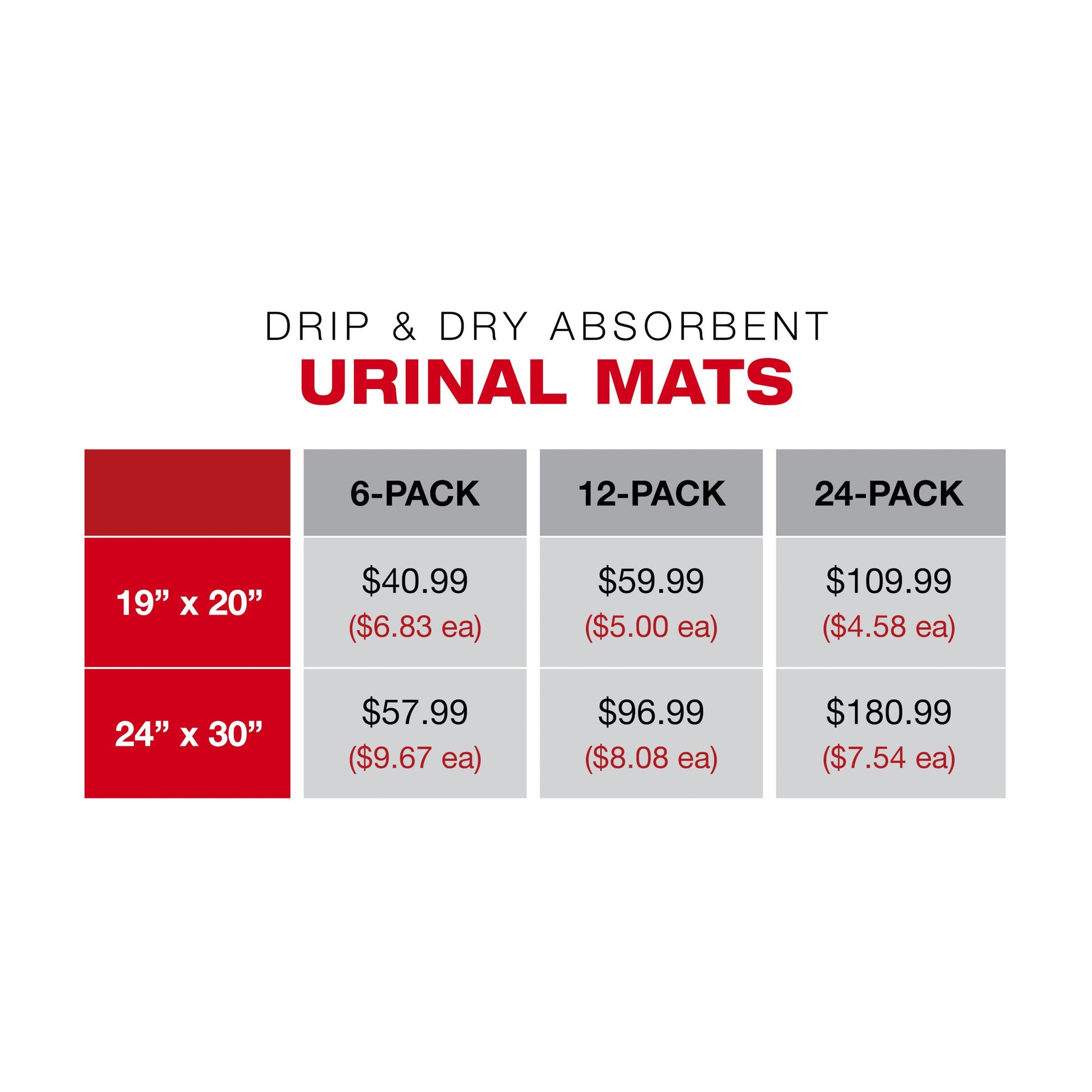 G-Floor Restroom Urinal Mats are crafted with premium absorbent material and a 100% vinyl backing. The G-Floor wick-away fiber technology top efficiently absorbs and disperses liquids for quick drying. Cleaning and maintaining G-Floor Restroom Urinal Mats are a breeze. Simply hose down with mild soap and water. Don’t worry as G-Floor Restroom Mats are built to last and won’t lose their absorbency after cleaning.
