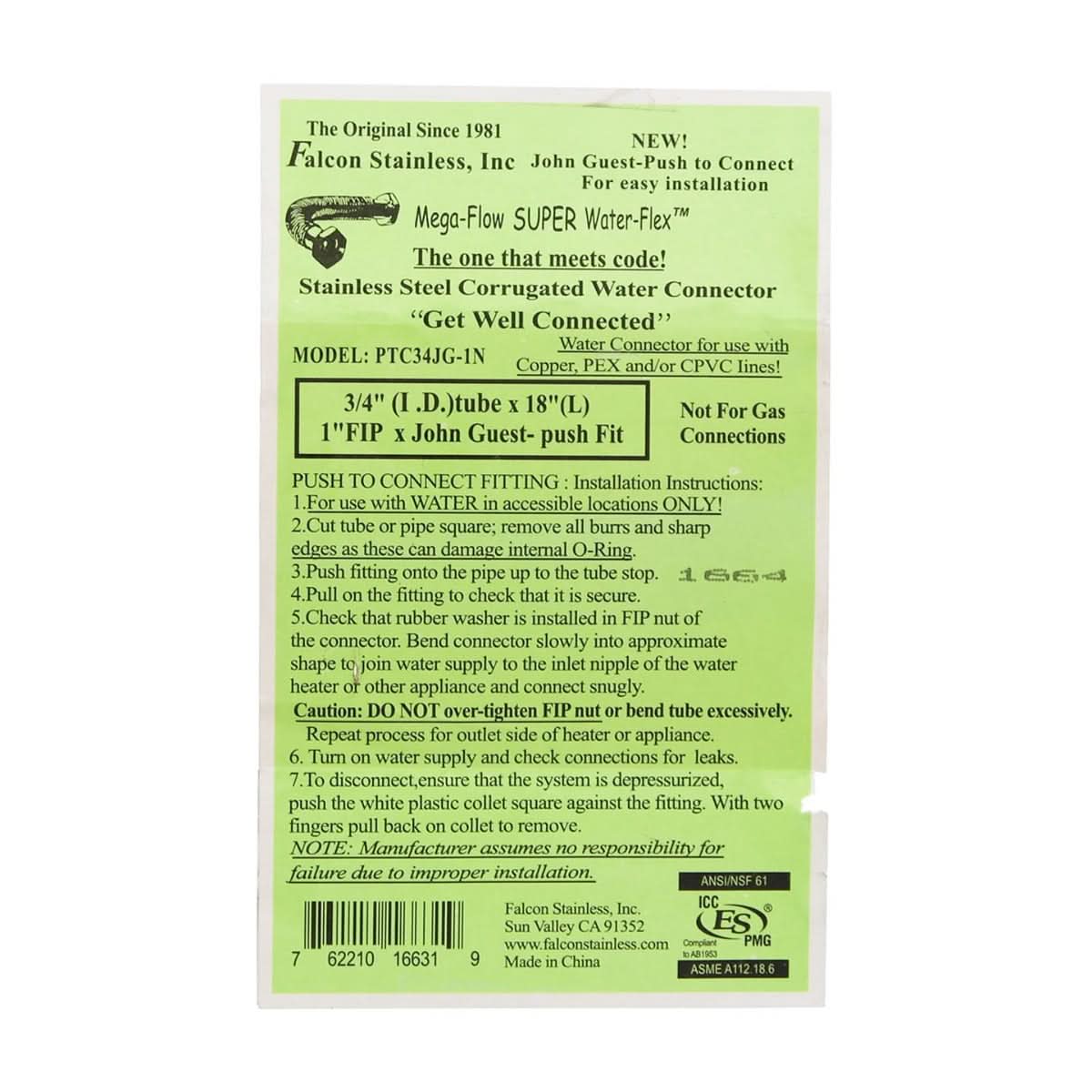 Stainless Steel Flex Connector 34 Inch PTC X 1 Inch FIP (18-Inch). This whole house system component makes it easy to configure your water system. Push-to-connect fittings install easily, and the flexible pipe design allows for minimal hassle with systemStainless Steel Flex Connector 34 Inch PTC X 1 Inch FIP (18-Inch). This whole house system component makes it easy to configure your water system. Push-to-connect fittings install easily, and the flexible pipe design allows for minimal hassle with system spacing. Get your stainless steel flexible connector today!Share