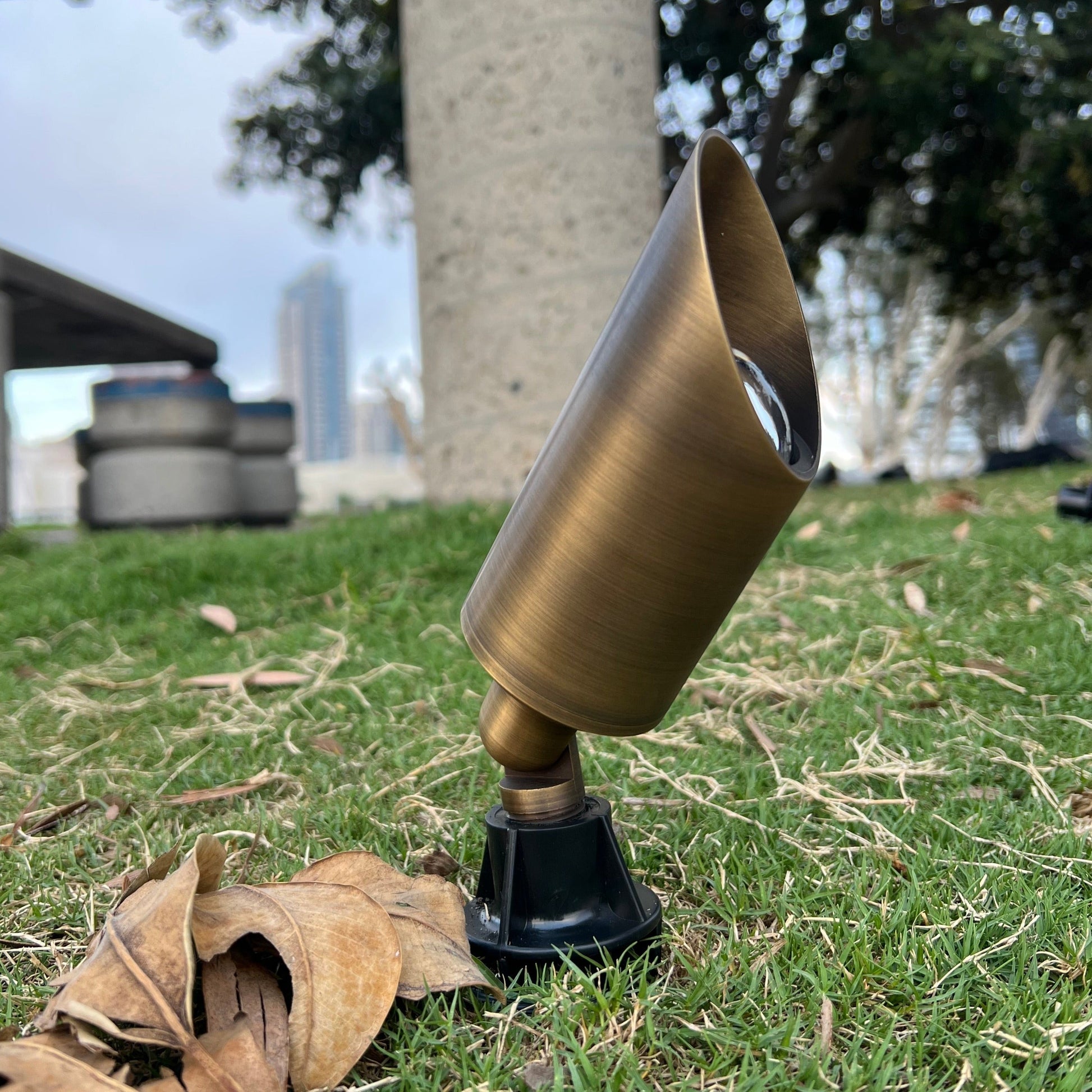 Illuminate your outdoor space with the Stelvio Antique Brass Spotlight, perfect for low voltage landscape lighting. This spot light, crafted from durable brass, adds both style and resilience to your outdoor ambiance. Ideal for highlighting key features in your landscape, the outdoor spotlight from Pampa Lighting incorporates energy-efficient LED technology, ensuring long-lasting brightness. Upgrade your outdoor experience with these brass landscape lights and enhance your scenery with the brilliance of LED spot lights
