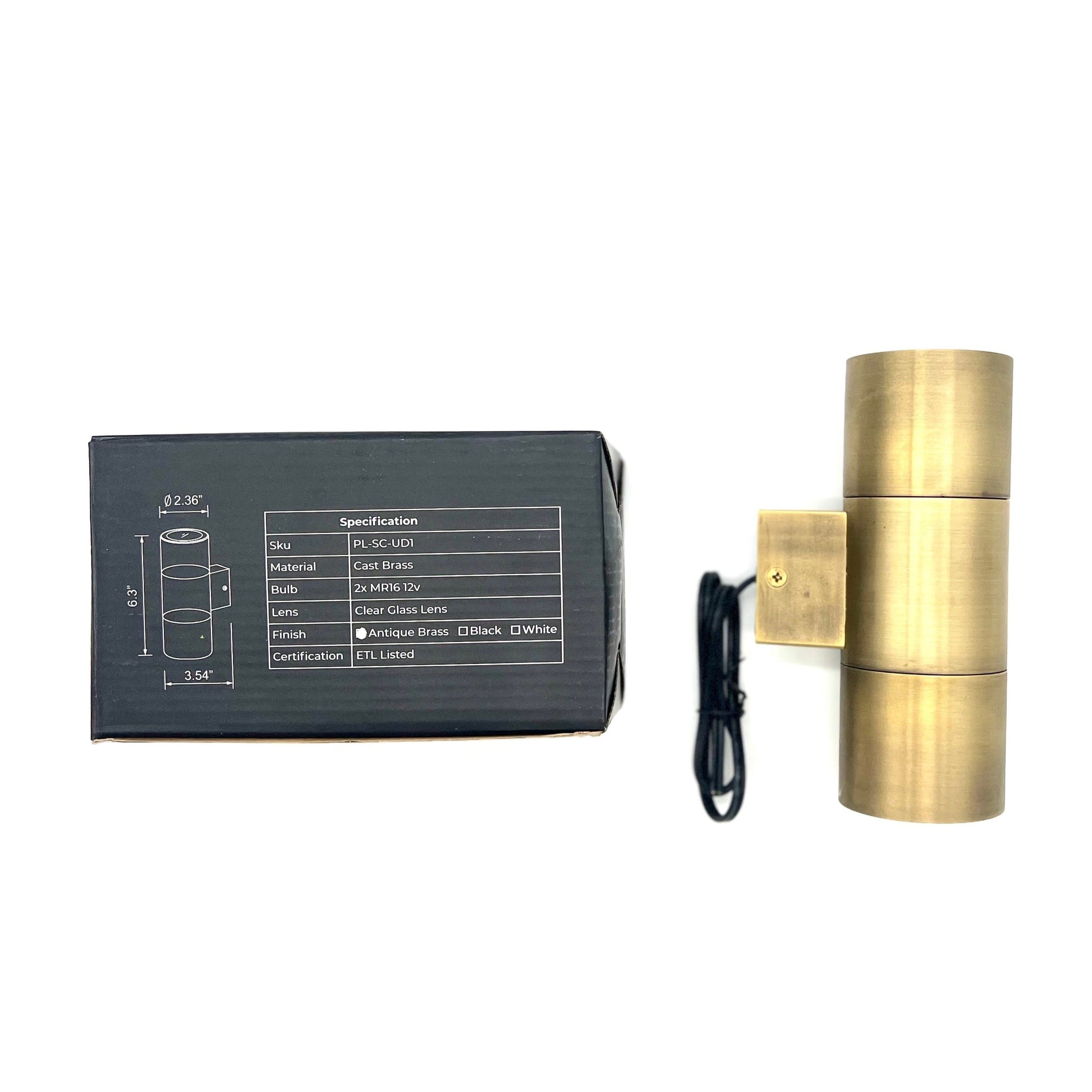 This is an Up/Down sconce light, which runs 2x MR16 bulbs, the fixture comes with mounting screws and anchors and is available in black, white, and antique brass finish.
