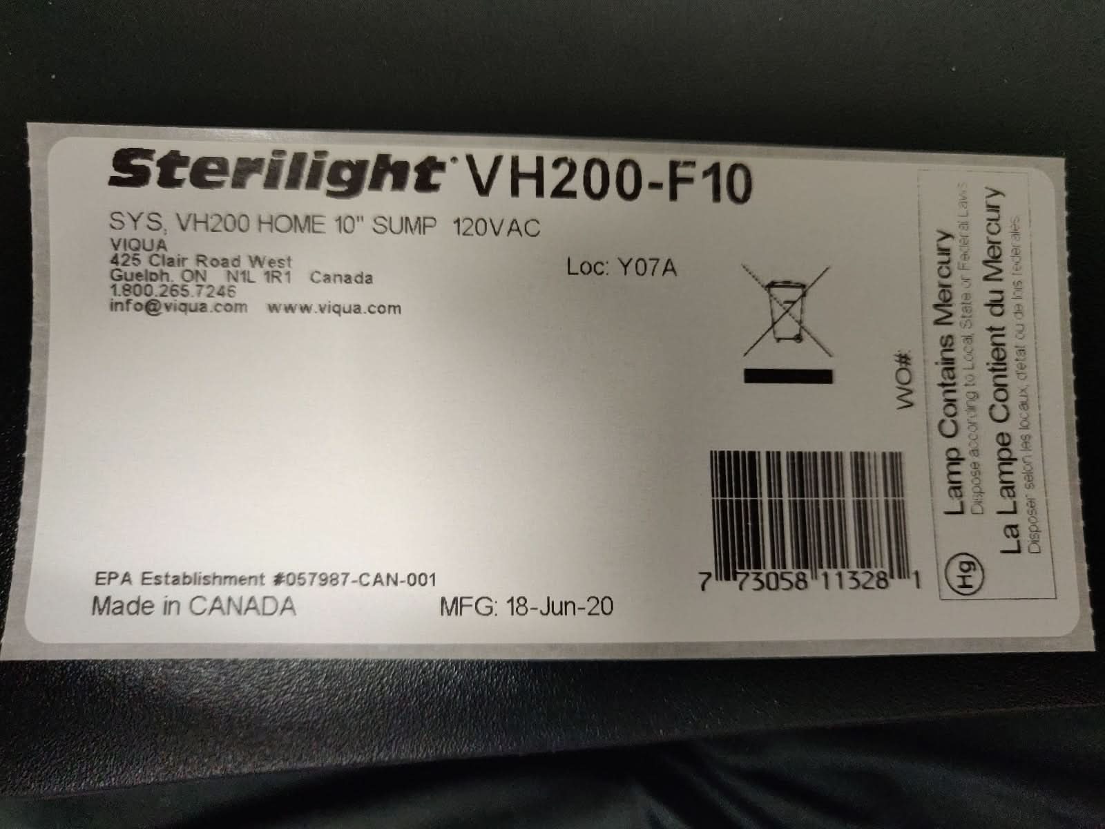VH200-F10 UltraViolet Water Filtration System by Viqua