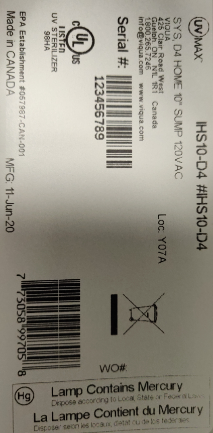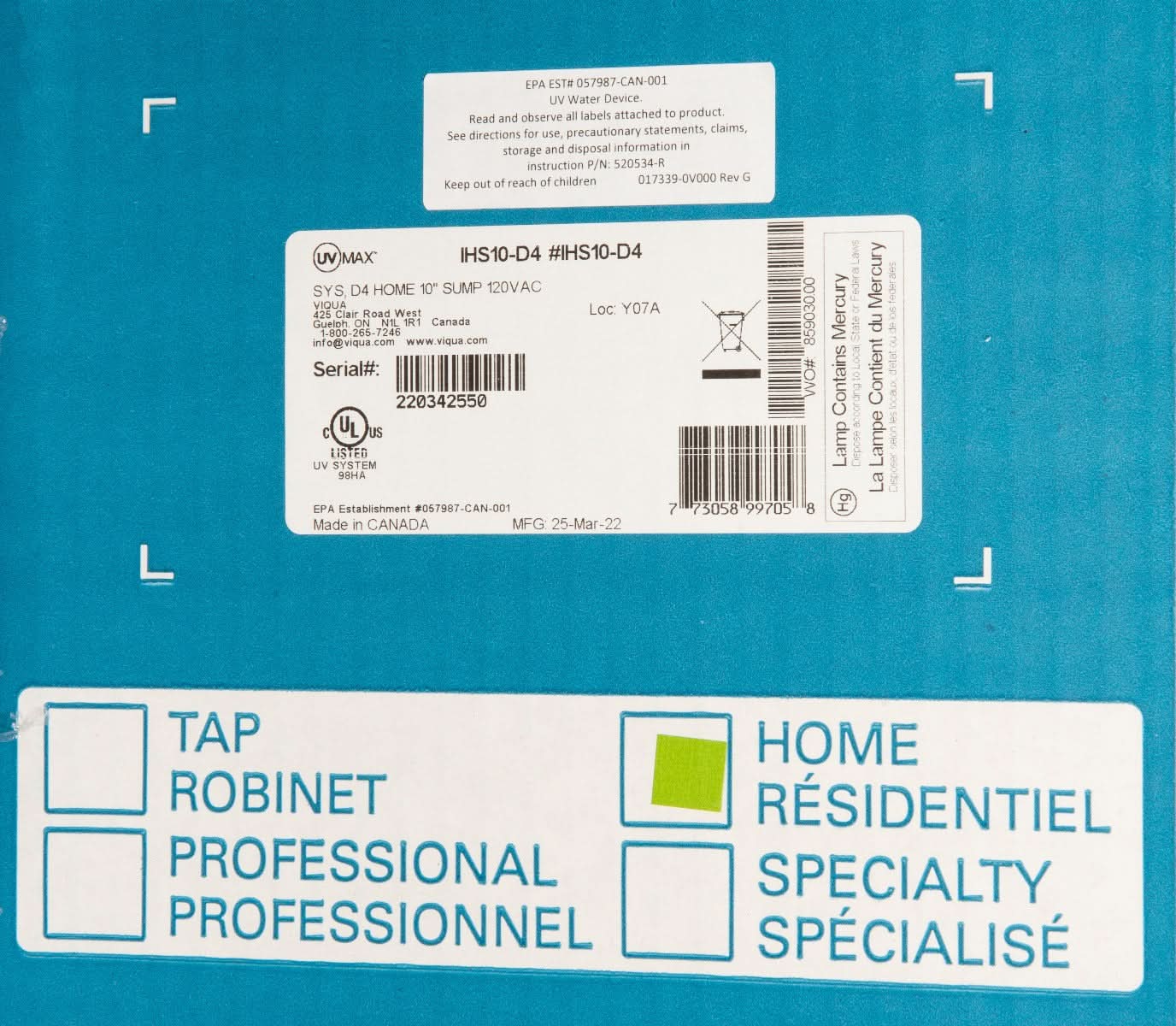 Viqua IHS10-D4 UVMAX Home Plus UV Disinfection System