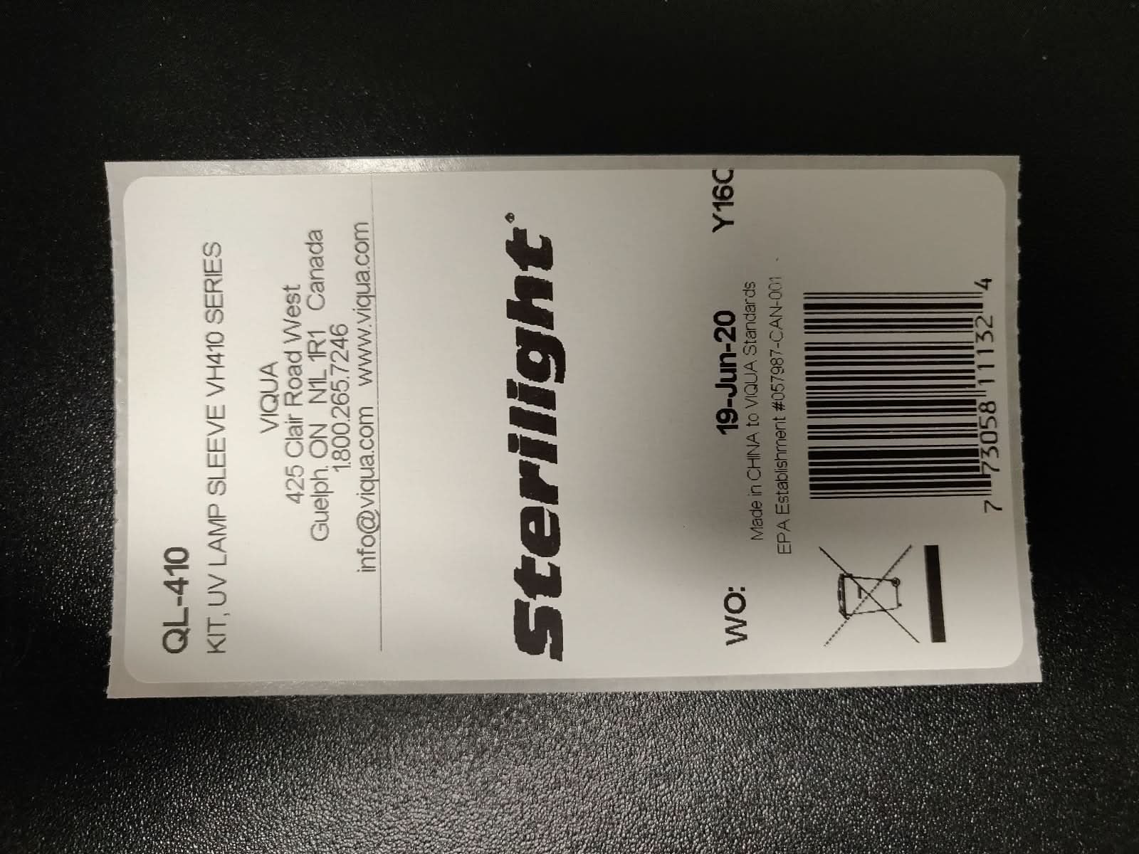 Viqua QL-410 Replacement UV Lamp and Quartz Sleeve for VH410The Viqua QL-410 Replacement UV Lamp and Quartz Sleeve for the VH410 kit is the ideal pairing of necessary components for situations when an overhaul of your UV system is necessary. The quartz sleeve is an important component that surrounds the UV light, protecting and preventing it from coming in contact with the water. UV light is transmitted through the quartz sleeve and purifies the water reducing the bacteria and viruses that would otherwise make it to your beverages. With use, the sleeve will accumulate minerals from the water which must be taken care of and removed about every 3 months to prevent the UV treatment from becoming less effective. Cleaning the sleeve will both help the efficacy of the system but also prolong the life of the sleeve. Once the mineral layer becomes permanent and can not be removedShare