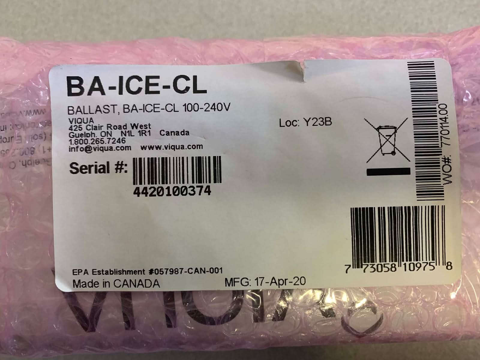The Viqua Replacement Controller for VH200 and VH410. The BA-ICE-CL controller is a multipurpose device that comes with the VH200 and VH410 systems. Featuring a lamp life remaining counter that tracks the number of days of operation, this feature will count down to zero and then sound a high pitched tone alerting the nThe Viqua Replacement Controller for VH200 and VH410. The BA-ICE-CL controller is a multipurpose device that comes with the VH200 and VH410 systems. Featuring a lamp life remaining counter that tracks the number of days of operation, this feature will count down to zero and then sound a high pitched tone alerting the need to change the UV lamp. The alert can be deferred up to 4 separate times. A more urgent alert will also be sound if their is a lamp failure, this alarm cannot be deferred and should be dealt with immediately. The final feature of the BA-ICE-CL controller is a total days of operation reading which will clock the total running time of the controller. This system acts as an alert and reminder for optimum operating conditions for the VH200 and VH410 system, do not disregard warningShare